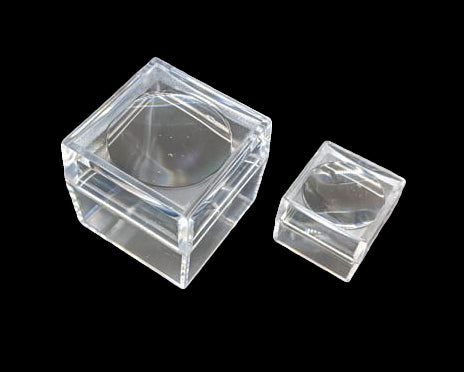1.1 x 1.1" square acrylic magnification box. Designed for 4x magnification of small specimens.